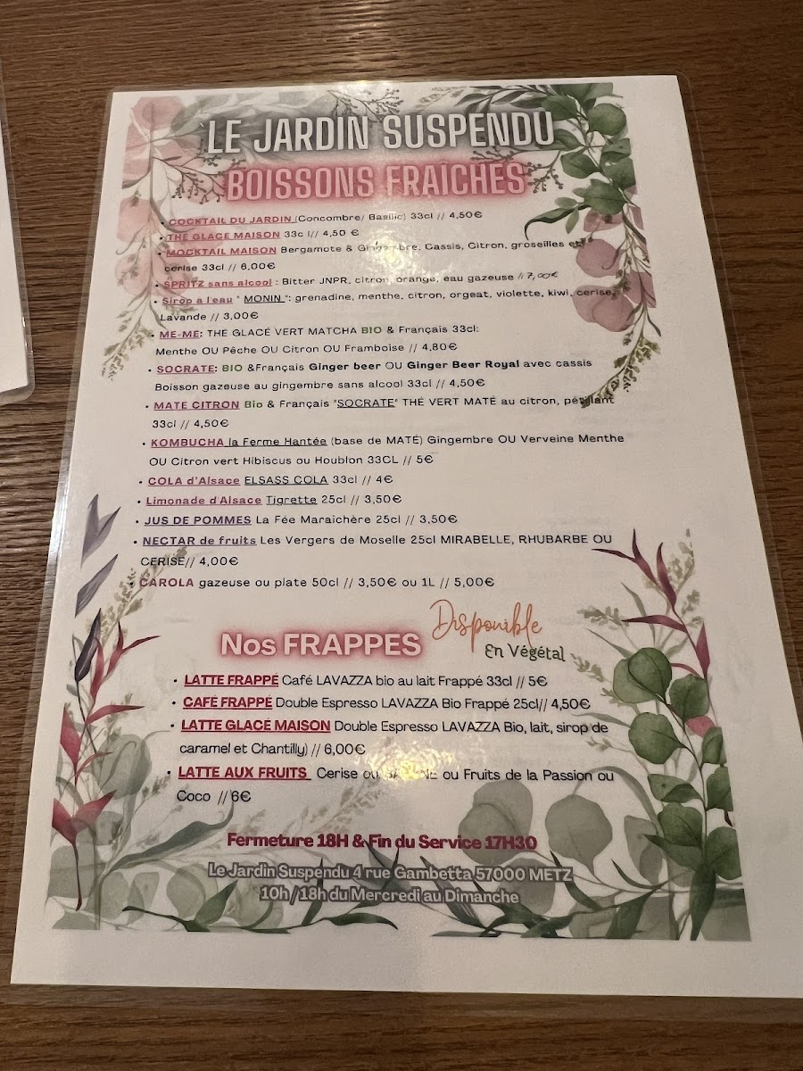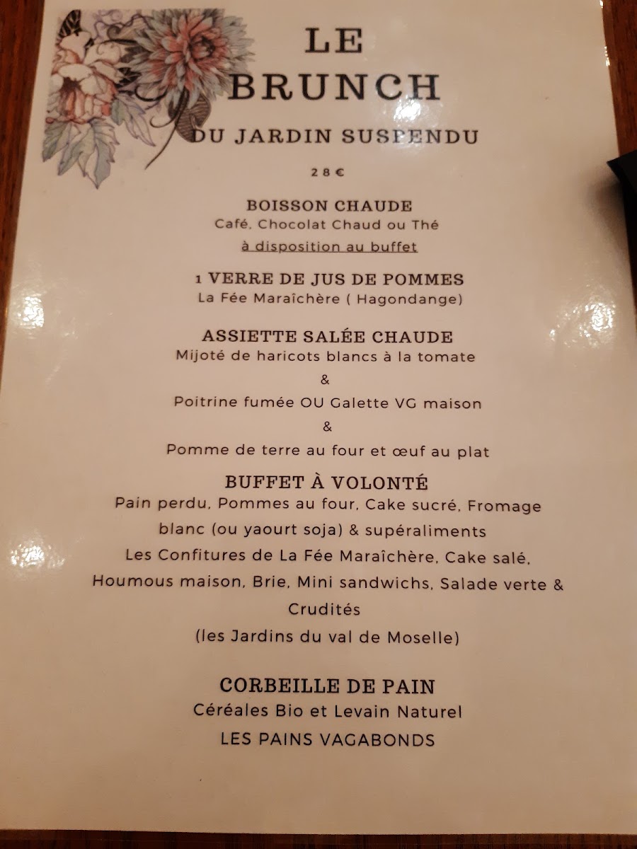 Le Jardin Suspendu Menu